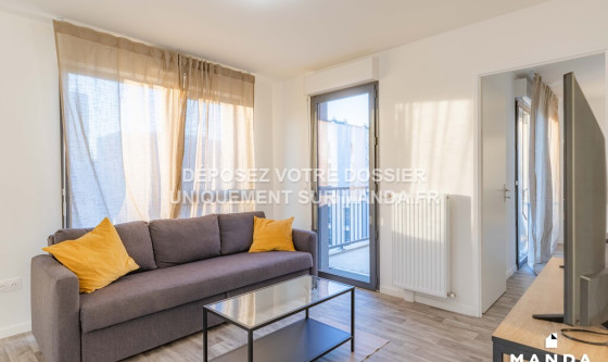 Logement Manda ! Visitez et déposez votre dossier uniquement sur notre plateforme ! Nous ne vous enverrons jamais le bail ou le RIB par mail - tout est sécurisé sur notre plateforme. À louer – T2 meublé avec balcon et parking à Bondy L'Agence Manda vous propose ce joli T2 meublé, idéalement situé rue Germaine Tillion à Bondy, à proximité des lignes de bus 615 et 616 (arrêt Suzanne Buisson) et de toutes les commodités. Les charges comprennent l'eau chaude et le chauffage. Points forts du logement : • Séjour lumineux et chambre confortable, chacun avec accès au balcon. • Cuisine ouverte entièrement équipée : plaques, hotte, réfrigérateur avec congélateur, micro-ondes, lave-vaisselle et machine à laver. • Chambre avec lit double et grand placard. • Salle de bain moderne avec cabine de douche, meuble vasque et WC. • Place de parking et local à vélos inclus. Ce T2 neuf et fonctionnel, alliant confort et praticité. Pour rappel, cet appartement est situé dans une zone soumise à encadrement des loyers. Loyer de base : 651,9€ Loyer de référence majoré (Loyer de base à ne pas dépasser) : 783,1€ Complément de loyer : 48,21€ VOUS POUVEZ VISITER PLUS DE 3 000 LOGEMENTS (visite virtuelle + vidéos) ET DÉPOSER VOTRE CANDIDATURE SUR LE SITE WEB MANDA (REF : MANDA-33870) Référence du bien : MANDA-33870
