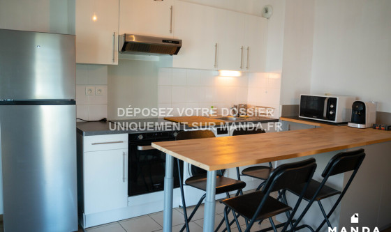 Logement Manda ! Visitez et déposez votre dossier uniquement sur notre plateforme ! Nous ne vous enverrons jamais le bail ou le RIB par mail - tout est sécurisé sur notre plateforme. Situé à Bordeaux, ce T2 meublé se trouve Cours de Québec. Non loin de l'arrêt de tramway Berges du Lac, le logement est proche du Parc des expositions de Bordeaux et dispose d'un balcon ainsi que d'une place de parking. L'appartement est composé d'une entrée, d'un salon où vous trouverez un canapé, une table basse, une TV avec son meuble de rangement, un bureau et une chaise. La cuisine est américaine et équipée de plaques de cuisson, d'une hotte, d'un four, d'un micro-onde, d'un réfrigérateur avec espace de congélation et de chaises hautes. La chambre dispose d'un lit double et d'un meuble dressing. La salle de bain, quant à elle, d'une baignoire. Ce joli T2 n'attend que vous ! Pour rappel, cet appartement est situé dans une zone soumise à encadrement des loyers. Loyer de base : 630,0€ Loyer de référence majoré (Loyer de base à ne pas dépasser) : 756,0€ Complément de loyer : 112,83€ VOUS POUVEZ VISITER PLUS DE 3 000 LOGEMENTS (visite virtuelle + vidéos) ET DÉPOSER VOTRE CANDIDATURE SUR LE SITE WEB MANDA (REF : MANDA-24185) Référence du bien : MANDA-24185