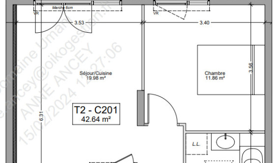 OIKO GESTION vous propose un superbe T2 de 42,64m² au 1er étages avec 7m² de balcon. L'appartement est composé d'un séjour sur balcon avec cuisine ouverte aménagée, d'une chambre, d'une salle de bain et d'un WC. Un double box complètent ce bien. Chauffage et eau chaude individuels. À 7,5 km de Genève « La Ferme de l'Hôpital » est une résidence neuve, sécurisée avec espaces verts partagée par 7 bâtiments. Chaque bâtiment est composé d'une vingtaine d'appartements répartis sur 2 étages maximum (avec ascenseur), d'un parking en sous-sol et d' un local à vélos. N'hésitez pas à nous contacter ! Les informations sur les risques auxquels ce bien est exposé sont disponibles sur le site Géorisques : www. georisques. gouv.fr