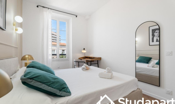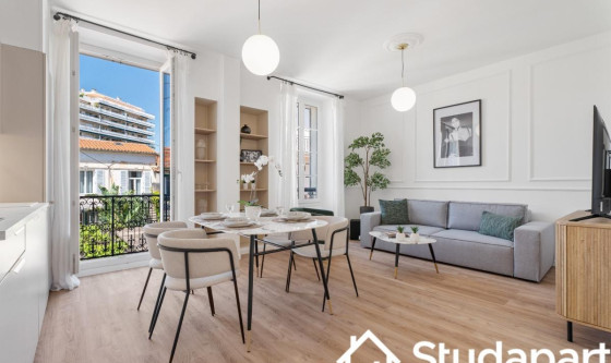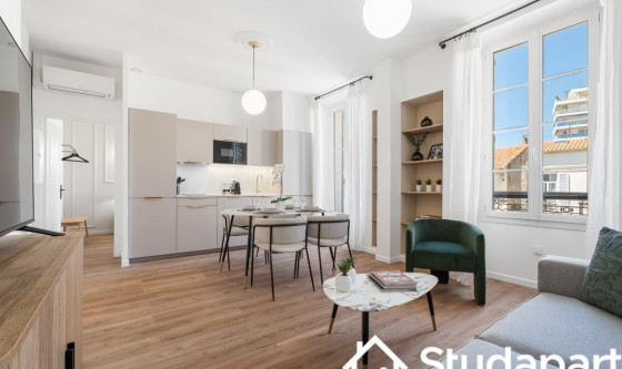 Cet appartement charmant, entièrement refait à neuf par un architecte d'intérieur, est situé au premier étage d'un immeuble sans ascenseur et peut accueillir jusqu'à 4 personnes, offrant un cadre paisible avec vue sur cour. Avec une surface de 53 m², ce logement se compose de : - un espace de vie baigné de lumière avec salon et salle à manger, -une cuisine parfaitement équipée (machine à café, bouilloire, four micro-ondes, plaques de cuisson, lave-vaisselle, réfrigérateur, congélateur), - une chambre avec un lit de 160 × 200 cm, - une deuxième chambre avec un lit de 160 × 200 cm, - une salle de bain avec douche et WC, - bureau de travail, - aspirateur, lave-linge, sèche-cheveux, fer, cintres, détecteur de fumée, - TV, Wifi, air conditionné, radiateurs. Le logement ne dispose pas d'une place de parking privé mais de nombreuses places de stationnement gratuites sont disponibles à proximité. Des frais de gestion d'un montant de 689€ seront facturés pour les locations en moyenne durée. Ces frais comprennent l'état des lieux d'entrée et de sortie ainsi que les frais de ménage. Situé au cœur de Cannes, cet appartement est à seulement 15 minutes à pied de la gare et de la plage, et à 18 minutes à pied du Palais des Festivals. À proximité, découvrez des adresses de choix telles que Café Hoche, La Palme d'Or, Mr. Nakamoto, et le Copenhagen Coffee Lab pour une expérience gastronomique exceptionnelle. Explorez également des sites culturels comme la Villa Montrose et le Musée des Explorations du Monde. En train : Gare de Cannes → accessible à pied en 15min En bus : Lignes de bus locales disponibles → à 1min à pied pour rejoindre le centre-ville et les alentours En avion : Aéroport Nice Côte d'Azur → 30min en voiture À votre arrivée, vous serez accueillis par un concierge Welkeys qui sera chargé de vous remettre les clefs. Nous serons disponibles pendant toute la durée de votre séjour, n'hésitez pas à nous contacter si besoin. Updated on 23/10/2025 Mise à jour le 23/10/2025