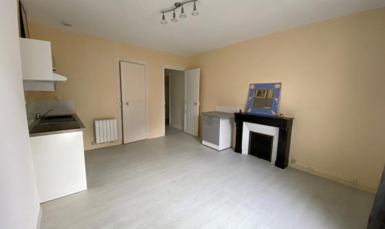Appartement plein centre comprenant : un couloir d'entrée, un séjour avec coin cuisine semi-aménagé et équipé (plaques vitro et hotte), 1 chambre, une salle d'eau, wc séparés. Cave. Chauffage électriques à inertie. Fenêtres PVC double vitrage. CHARGES = TOM + COPRO + EAU « Les informations sur les risques auxquels ce bien est exposé sont disponibles sur le site Géorisques : www.georisques.gouv.fr ».