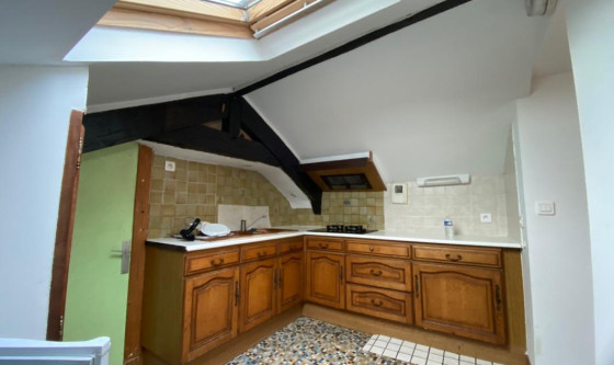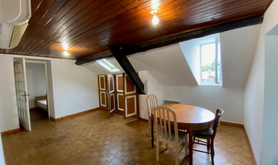 Appartement situé en centre-ville, au 3ème étage, comprenant : une entrée avec wc séparés, un séjour avec placard, une cuisine séparée aménagée et équipée (plaques, hotte et frigo top), un débarras, une chambre avec placards et une salle de bains. Chauffage électrique. Fenêtres PVC double vitrage et velux bois double vitrage. CHARGES = TOM + COPRO « Les informations sur les risques auxquels ce bien est exposé sont disponibles sur le site Géorisques : www.georisques.gouv.fr ».