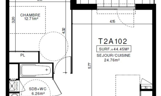 A102 LE FLAUBERT : LAISSEZ-VOUS CHARMER PAR CE SUP T2 DANS RESIDENCE RECENTE (2024) DE STANDING A FAIBLE CONSOMMATION ENERGETIQUE. Vous trouverez une entrée avec placard mural aménagé ouvrant sur une grande pièce à vivre de près de 25m² avec cuisine aménagée (plaques vitro, four, hotte, meubles hauts et bas) donnant sur une confortable terrasse. Une chambre en sol parquet avec placard mural aménagé. Salle de bain avec meuble sous vasque et sèche-serviettes. CHAUFFAGE IND AU GAZ. VISIOPHONE. PROCHE COMMERCES. Consommation d'énergie totale entre 345 et 466EUR par an (prix moyens des énergies indexés au 1er janvier 2021). Les informations sur les risques auxquels ce bien est exposé sont disponibles sur le site Géorisques : www. georisques. gouv. fr