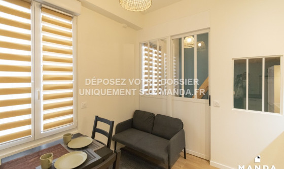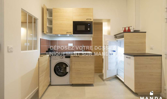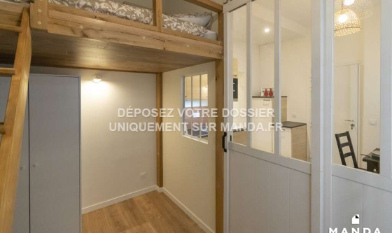Logement Manda ! Visitez et déposez votre dossier uniquement sur notre plateforme ! Nous ne vous enverrons jamais le bail ou le RIB par mail - tout est sécurisé sur notre plateforme. A proximité du métro Mairie de Clichy, Manda propose un T2 en location rue Fouquet. Situé au rez-de-chaussée, ce studio meublé a été entièrement refait à neuf. L'entrée ouvre sur la pièce de vie. Le séjour est clair et lumineux, et se compose d'un espace repas et d'un espace salon. La cuisine est ouverte et entièrement équipée. La chambre est séparée par une porte coulissante, et dispose d'un lit double en mezzanine, d'une armoire à dressing et d'une fenêtre côté rue, comme le séjour. La salle de bain se compose d'une cabine de douche, d'un meuble vasque et d'un sèche-serviettes chauffant. Les WC sont dans la salle de bain. Très belles prestations pour ce T2 en location : entièrement refait à neuf, meublé et équipé, décoré avec goût, belle hauteur sous plafond, lumineux, calme, optimisation parfaite de l'espace... Situé à proximité du métro Mairie de Clichy, vous serez à deux pas de tous les commerces et le quartier est vivant. Idéal pour un couple, ce superbe studio n'attend plus que vous ! VOUS POUVEZ VISITER PLUS DE 3 000 LOGEMENTS (visite virtuelle + vidéos) ET DÉPOSER VOTRE CANDIDATURE SUR LE SITE WEB MANDA (REF : MANDA-16388) Référence du bien : MANDA-16388