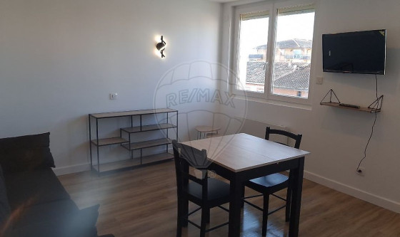 Appartement T1 BIS meublé, intégralement rénové à neuf, situé au second et dernier étage d'un petit immeuble au centre ville de Cugnaux (Mairie), proposant une belle pièce de vie (salon/salle à manger) avec cuisine ouverte équipée, un espace nuit séparé avec lit en 90 et une salle d'eau avec WC et machine à laver.