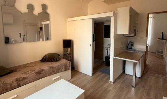 L'appartement est divisé en deux espaces privatifs, chacun avec : Son entrée indépendante depuis l'extérieur Son coin nuit ouvert Son espace bureau / TV Sa salle de bain + WC privatifs Les deux parties sont reliées par une cuisine commune ouverte, entièrement équipée (plaques, frigo, micro-ondes, rangements…). En bonus : • Espace buanderie avec lave-linge et sèche-linge • Jardin partagé bien entretenu, pour vos pauses ensoleillées