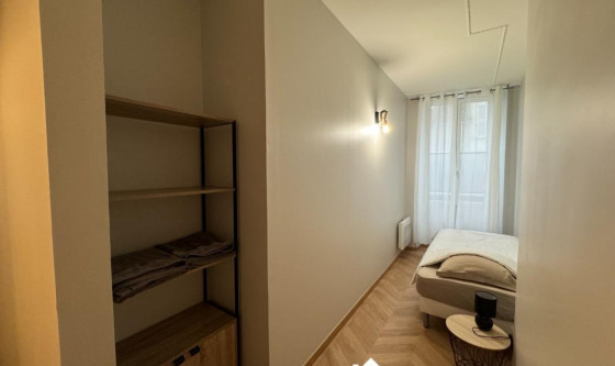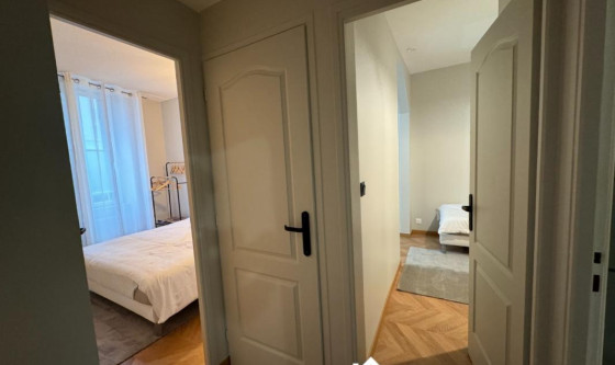 En plein centre ville de Fontainebleau, proche des commerces et de l'INSEAD, appartement de 50m2 tout équipé (tv; internet; électricité etc.) Séjour avec grand canapé, table basse, TV ecran plat et apple TV. Cuisine ouverte équipée : air-fryer, frigo, micro-onde, machine à laver le linge. 2 chambres : une avec lit double et une autre chambre avec 2 lits simples. Penderies dans chaque chambres. Salle d'eau avec douche et wc. Updated on 11/11/2025 Mise à jour le 11/11/2025