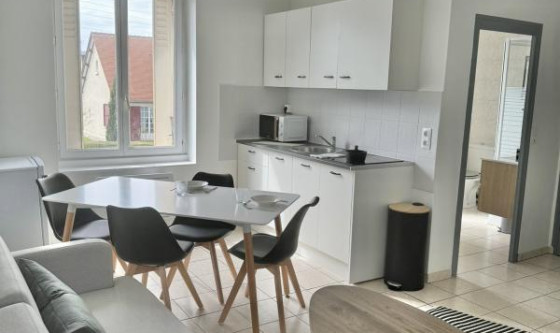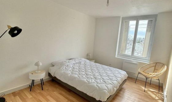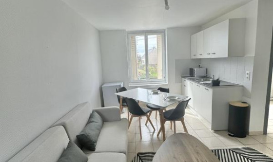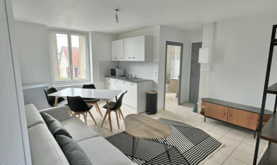 Un appartement T2 entièrement meublé, proche commerces et commodités. Un appartement de 36 m² au 1er et dernier étage. Pas de parties communes dans les charges. Cet appartement comprend : Un dégagement, avec cage d'escalier au rdc pour accès au 1er étage. Une pièce de vie ouverte sur une cuisine neuve aménagée et équipée : rangement haut et bas, évier, 2 plaques de cuisson vitrocéramique, 1 four à micro-onde et un petit frigo. Carrelage au sol. 1 chambre, 1 espace rangement / dressing , 1 salle d'eau, douche, WC, vasque, lave-linge. Fenêtres double vitrage avec volets persienne métallique. Chauffe-eau et chauffage électrique. Prix de la location : 591 € hors charges + 8 € de provisions sur charges. Compris dans les provisions sur charges : taxe ordures ménagère, eau froide. Libre au 1er janvier 2026, sans honoraire d'agence.