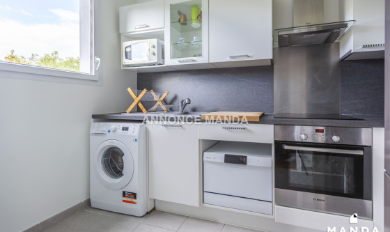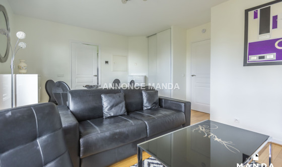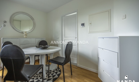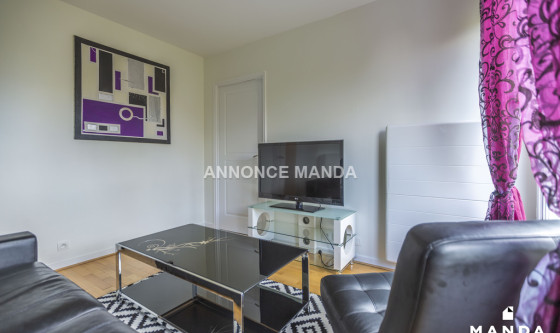 Logement Manda ! Au pied du RER d'Issy, Manda vous propose un T2 en location, meublé, au 3ème étage avec ascenseur d'une résidence récente et sécurisée avec visiophone. L'appartement a été refait à neuf et dispose d'une belle vue sur Paris et la Tour Eiffel. Dans la pièce principale, vous aurez un canapé convertible en cuir véritable, un fauteuil, une table basse, un meuble télé avec grand écran plat (107 cm), une table à manger avec 3 chaises, des meubles de rangement et une armoire à penderie. La cuisine indépendante est équipée d'un évier, des plaques de cuisson, une hotte aspirante, un four, un micro-ondes, un réfrigérateur, un congélateur, un lave-vaisselle, un lave-linge, une machine à café et des placards de rangement avec un nécessaire de vaisselle. La chambre dispose d'un lit double, deux tables de nuit et deux placards avec penderie et étagères. Dans la salle de bain, vous trouverez une baignoire, une vasque, un miroir, des meubles et placards de rangement et un sèche-serviettes électrique. Les toilettes sont séparées et disposent d'une douchette, un lave-mains et une armoire à pharmacie. Très belles prestations pour ce T2 en location bien agencé et tout équipé, avec chauffage à inertie (dernière génération). Les charges comprennent l'eau courante et l'entretien des parties communes. Vous aurez la possibilité de louer une place de parking en sus dans un garage collectif intérieur sécurisé, pour 100€ /mois. Au pied du RER C et de la future Gare Grand Paris (moins de 60 mètres), et proche des arrêts de bus 190, 169, et 260. Tram d'Issy à moins de 500 mètres. Vous aurez à proximité de nombreux commerces, restaurants et supermarchés. Rare sur le marché, cet appartement n'attend plus que vous, alors n'hésitez pas à postuler. Référence du bien : MANDA-06464