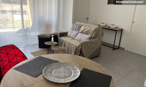 Séjournez au calme entre ville et mer T2 42 m², avec terrasse 8 m², climatisé, dans résidence neuve – tout commerce à proximité – à 8 minutes en voiture des plages, de Montpellier, de l'accord aréna, de l'aéroport et de la gare MTP Sud de France – 2 parking privatifs – ascenseur - local à vélo Lit en 140 Un canapé convertible d'appoint en 120 Une salle de bain avec douche. TV et wifi Cuisine équipée Lave-linge Appartement non-fumeur – animaux non admis – draps, torchons et serviettes de toilettes fournis