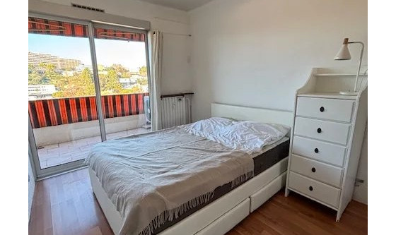 Quartier Moulières, dans une résidence avec gardien proche des commodités ( bus ,..), appartement meublé récemment rénové. Trés lumineux, exposition ouest avec une belle terrasse et une vue dégagée. Cuisine aménagée et équipée ,ouverte sur le salon. Chambre avec placard, salle d'eau et wc indépendant. Climatisation réversible, fibre optique, volets roulants électriques, chauffage et eau en collectif. Provisions sur charges avec régularisation annuelle. Dossier éligibles GLI ou certificat VISALE ou GARANT Me Isabelle GIRAUD +33492992628 Les informations sur les risques auxquels ce bien est exposé sont disponibles sur le site Géorisques : www. georisques. gouv. fr