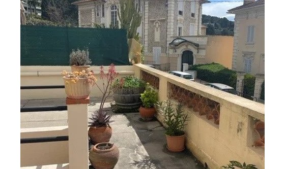Situé à proximité de toutes commodités, au rez-de-chaussée d'une petite copropriété de 3 étages, avec entrée indépendante (desservie par quelques marches) 2 pièces meublé de 57 m2, mono façade sud, climatisé, avec terrasse privative de 43 m². Spacieuse entrée, chambre, séjour, salle à manger, cuisine, salle de douche avec toilettes. Vue dégagée avec aperçu mer. Tout individuel. Pas de cave ni de stationnement Appartement loué en meublé longue durée. LIBRE A PARTIR de juin 2026 / dossiers éligibles GLI ou certificat GARANT ME ou VISALE Loyer 1030 euros + 5 euros de provisions sur charges + 25 euros de provisions OM Pour plus de renseignements : 04.93.45.41.26 Geraldine RATZMANN +33660180610
