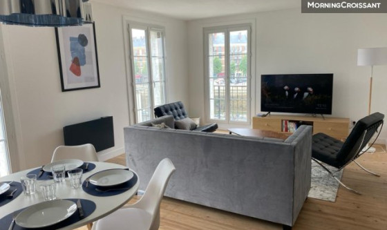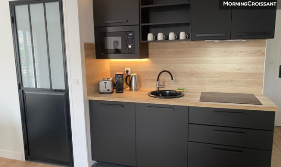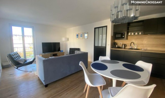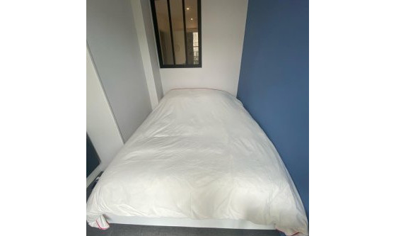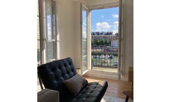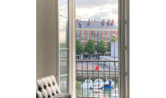 Quai Notre-Dame - 2 pièces au 2ème étage sans ascenseur d'un immeuble de la reconstruction par Auguste PERRET, comprenant une entrée (placard), un séjour avec cuisine ouverte, un coin nuit (lit 2 places en 140), une salle d'eau, un WC séparé, une buanderie. Grand et large balcon d'angle. Emplacement de parking libre en extérieur dans la cour privée de l'immeuble.