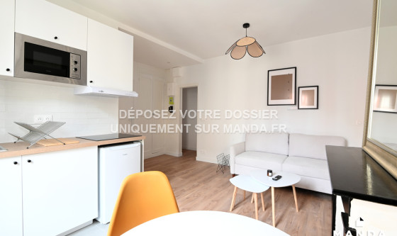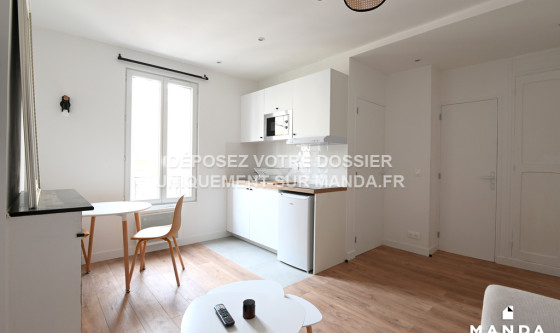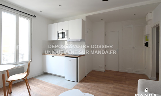 Logement Manda ! Visitez et déposez votre dossier uniquement sur notre plateforme ! Nous ne vous enverrons jamais le bail ou le RIB par mail - tout est sécurisé sur notre plateforme. Situé à Levallois-Perret, ce T2 meublé de 33m2 se trouve Rue Louis Rouquier. A quelques minute à pied de la ligne 3 du métro et de la station de train Clichy-Levallois, le logement est proche de toutes commodités ainsi que du centre commercial Sowest. L'appartement est composé d'un salon lumineux, d'une cuisine ouverte, d'une chambre double, d'une salle de douche et de WC séparé.. Dans la pièce principale, décorée d'une cheminée condamnée, vous trouverez un canapé, une table avec 2 chaises et une TV écran plat. La cuisine est équipée d'un micro-ondes, de plaques de cuisson, d'une hotte et d'un réfrigérateur. La chambre dispose d'un lit double, d'un placard, d'un bureau mural avec chaise et d'étagères murales. Ce joli T2 tout neuf en location n'attend que vous ! VOUS POUVEZ VISITER PLUS DE 3 000 LOGEMENTS (visite virtuelle + vidéos) ET DÉPOSER VOTRE CANDIDATURE SUR LE SITE WEB MANDA (REF : MANDA-69247) Référence du bien : MANDA-69247