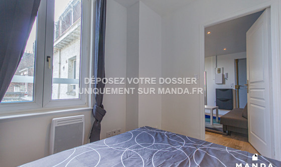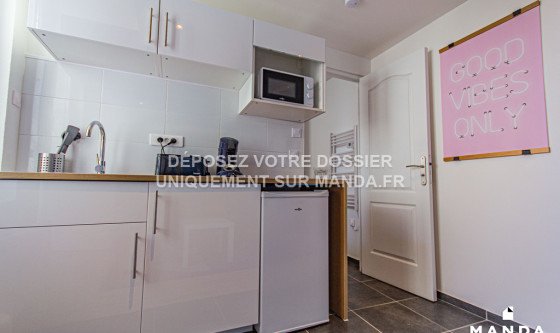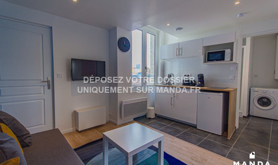 Logement Manda ! Visitez et déposez votre dossier uniquement sur notre plateforme ! Nous ne vous enverrons jamais le bail ou le RIB par mail - tout est sécurisé sur notre plateforme. À proximité du métro Canteleu (Ligne 2), Manda vous propose ce très joli T2 refait à neuf dans le quartier du Marais. L'appartement est situé au 1er étage sans ascenseur et donne intégralement sur une cour privée très calme. Ce logement propose une jolie pièce de vie équipée d'un canapé-lit, d'une table basse, d'une TV écran plat suspendue et d'un meuble de rangement. La grande fenêtre donne sur cour, sans vis-à-vis. L'espace cuisine est ouvert et équipé de plaques de cuisson, d'un four à micro-ondes, d'un réfrigérateur, d'une bouilloire et d'une machine à café. La chambre se compose d'un lit double, d'une commode, d'une table de chevet et d'une grande fenêtre donnant sur cour. La salle d'eau est dotée d'une grande cabine de douche, d'un lavabo avec tiroirs de rangement, d'un miroir, d'un sèche-serviettes et de WC. Idéal pour un couple ou un jeune actif, cet appartement n'attend que vous ! Pour rappel, cet appartement est situé dans une zone soumise à encadrement des loyers. Loyer de base : 335,0€ Loyer de référence majoré (Loyer de base à ne pas dépasser) : 402,5€ Complément de loyer : 204,18€ VOUS POUVEZ VISITER PLUS DE 3 000 LOGEMENTS (visite virtuelle + vidéos) ET DÉPOSER VOTRE CANDIDATURE SUR LE SITE WEB MANDA (REF : MANDA-03618) Référence du bien : MANDA-03618