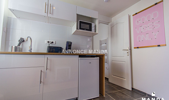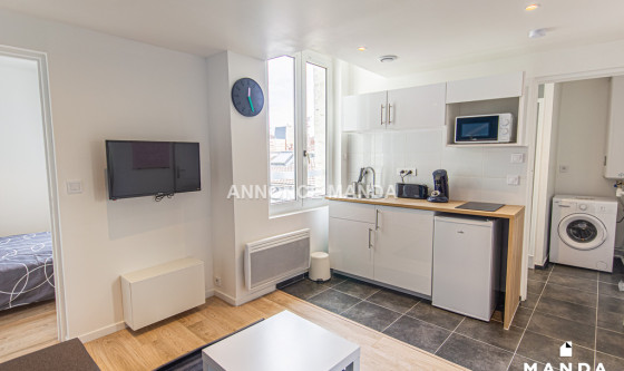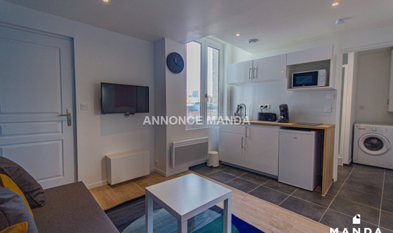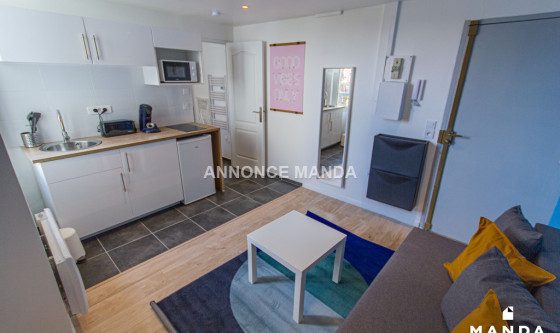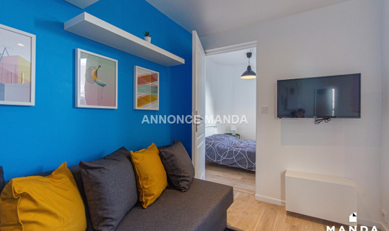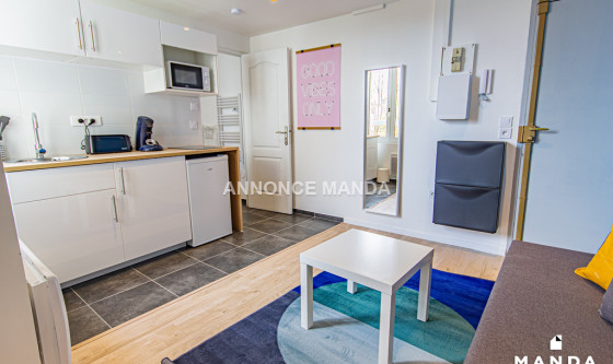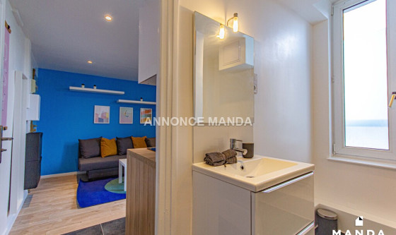 Logement Manda ! À proximité du métro Canteleu (Ligne 2), Manda vous propose ce très joli T2 refait à neuf dans le quartier du Marais. L'appartement est situé au 1er étage sans ascenseur et donne intégralement sur une cour privée très calme. Ce logement propose une jolie pièce de vie équipée d'un canapé-lit, d'une table basse, d'une TV écran plat suspendue et d'un meuble de rangement. La grande fenêtre donne sur cour, sans vis-à-vis. L'espace cuisine est ouvert et équipé de plaques de cuisson, d'un four à micro-ondes, d'un réfrigérateur, d'une bouilloire et d'une machine à café. La chambre se compose d'un lit double, d'une commode, d'une table de chevet et d'une grande fenêtre donnant sur cour. La salle d'eau est dotée d'une grande cabine de douche, d'un lavabo avec tiroirs de rangement, d'un miroir, d'un sèche-serviettes et de WC. Idéal pour un couple ou un jeune actif, cet appartement n'attend que vous ! Pour rappel, cet appartement est situé dans une zone soumise à encadrement des loyers. Loyer de base : 335,0€ Loyer de référence majoré (Loyer de base à ne pas dépasser) : 402,5€ Complément de loyer : 204,18€ Référence du bien : MANDA-03618