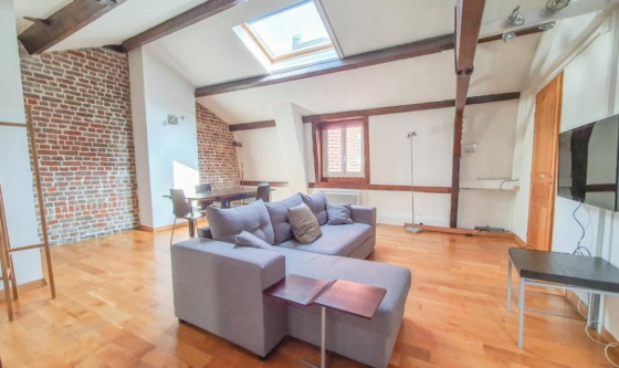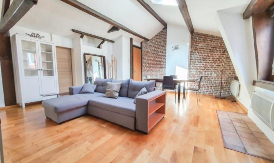 Magnifique Type 2 de 62m² situé Place de la République. Le logement situé au dernier étage, au calme, profite d'un charme intact avec poutres, mur de briques rouges et belle hauteur sous plafond. L'appartement est loué meublé, en excellent état. Le séjour lumineux de 30m² permet d'y accueillir un salon et une salle à manger. La chambre possède deux placards de rangements. La cuisine est séparée et bien équipée. La salle de douche se montre spacieuse, offrant de l'espace pour du rangement supplémentaire. Les wc sont séparées. Un espace buanderie est également présent. Profitez du calme en plein centre. Disponible le 06/11. Visites le 28/10. Les informations sur les risques auxquels ce bien est exposé sont disponibles sur le site Géorisques : www.georisques.gouv.fr