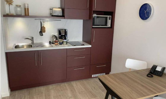 Photos non contractuelles : idée d'aménagement à Limoges. Résidence intergénérationnelle/Sénior alliant services sur place avec ces espaces communs (bien-être, salon, piscine, etc.), elle permet de conjuguer autonomie et partage, dans un environnement agréable, central et accessible. Présence du personnel 24 h/24, réception active jour et nuit. Chaque hébergement dispose d'un balcon ainsi que d'un salon avec un coin repas. Vous y trouverez une kitchenette entièrement équipée, incluant un réfrigérateur, un micro-ondes et une plaque de cuisson. Une salle de bains privative avec douche et toilettes complète l'ensemble. Les logements sont « semi-meublés » : - Une chambre avec un lit (sans linge de lit) et une armoire intégrée. - Une cuisine équipée avec plaque à induction, réfrigérateur, hotte, micro-ondes et le nécessaire de vaisselle. - Une table et deux chaises dans la cuisine. À noter : il n'y a pas de canapé, de table basse ni de meubles supplémentaires dans le salon ou la chambre. Mise à jour le 03/12/2025 Ref : 3190