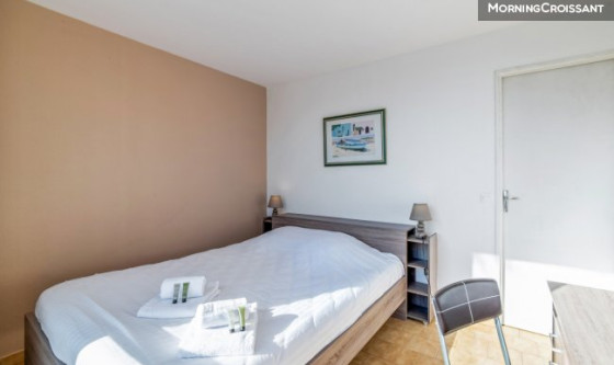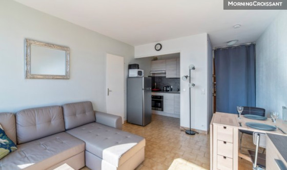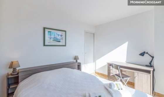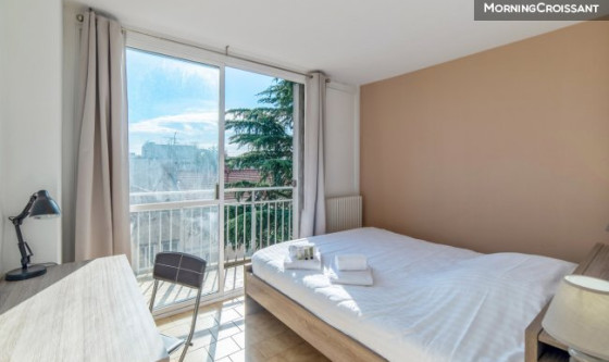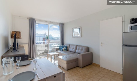 Dans un immeuble à cheval sur Lyon 3 et Villeurbanne, à 10 min à pied de la gare de Part-Dieu, cet appartement de la ville de Villeurbanne est idéal pour accueillir jusqu'à 2 personnes. Situé au 5ème étage d'une résidence calme et sécurisée (avec ascenseur), cet appartement sans vis-à-vis et entièrement baigné de lumière vous offre un espace de vie de 35 m² et se compose de : - un balcon ensoleillé avec vue dégagée, accessible par la chambre et le salon, - un séjour épuré avec canapé-lit confortable, - une chambre lumineuse avec lit queen-size (160 cm), - une salle de bain avec baignoire, - un coin cuisine bien équipé (machine à café, grille-pain, bouilloire, four, micro-ondes, frigo, plaques de cuisson), - aspirateur, lave-linge, sèche-cheveux et matériel de repassage, - TV et Wi-Fi (avec la fibre), - une place de parking privée. Situé à Villeurbanne, avec un accès rapide à la presqu'île de Lyon, vous aurez un emplacement idéal, proche de l'Université Jean Moulin Lyon 3. Vous pouvez accéder à l'université en 10 min à vélo et au centre ville en 15min. Des frais de gestion d'un montant de 455€ vous seront demandés avant votre entrée dans les lieux.