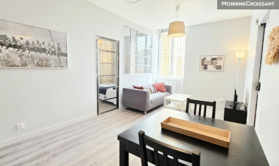 Un joli appartement de 37 m² très confortable et calme avec 1 chambre Appartement agréable, donne entièrement sur cour Parfaitement bien situé dans une rue calme proche du métro Valmy (ligne D) et de ses nombreux commerces Pièce de vie avec canapé, table basse, TV et son meuble. Table et 2 chaises Cuisine indépendante très bien équipée avec machine à laver, four + micro ondes, réfrigérateur avec congélateur, plaque de cuisson 4 feux, nombreux batteries et ustensiles de cuisine Chambre indépendante sur cour avec lit double, table et lampe de chevet Salle d'eau avec baignoire, meuble, radiateur sèche serviette, WC Double vitrage avec stores BSO (orientables et occultants) dans tout l'appartement