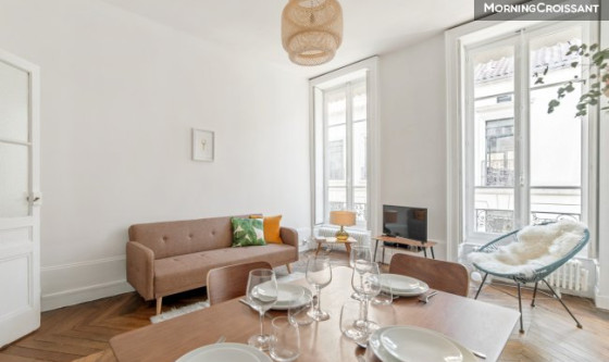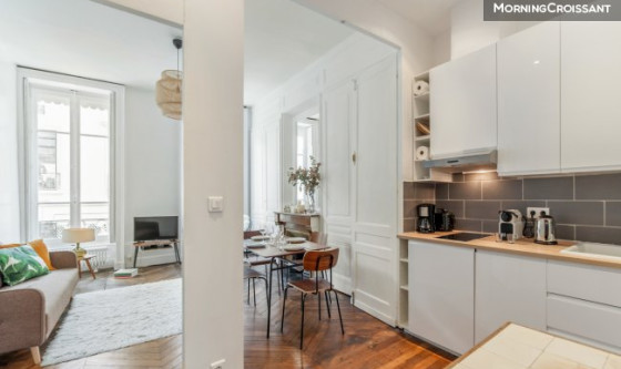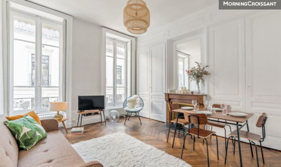 Situé au coeur de la Presqu'île, cet appartement est idéal pour accueillir 2 personnes. Proche de commerces et des transports, cet appartement est parfait pour habiter à Lyon. Appartement refait à neuf de 45 m² situé au 2e étage sans ascenseur. Ce logement avec moulures et parquet est composé de : -un salon avec canapé convertible -une cuisine entièrement équipée (bouilloire, machine à café, grille-pain, four, micro-ondes, plaques de cuisson, lave-vaisselle, frigo) -une chambre avec lit double -une salle de bain avec baignoire -aspirateur, produits ménagers, matériel de repassage, sèche cheveux -des rangements -TV et Wi-Fi Le logement ne comprend pas de place de parking mais vous avez la possibilité de vous garer dans un parking public (Parking Centre d'échange Perrache, Parking Q-Park) Des frais de gestion d'un montant de 585€ vous seront demandés avant votre entrée dans les lieux. Les frais de ménage d'un montant de 161,04€ et d'états des lieux d'un montant de 135€ sont inclus dans ce montant.