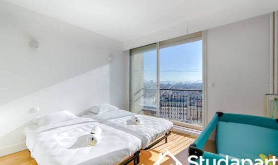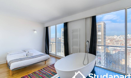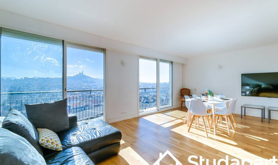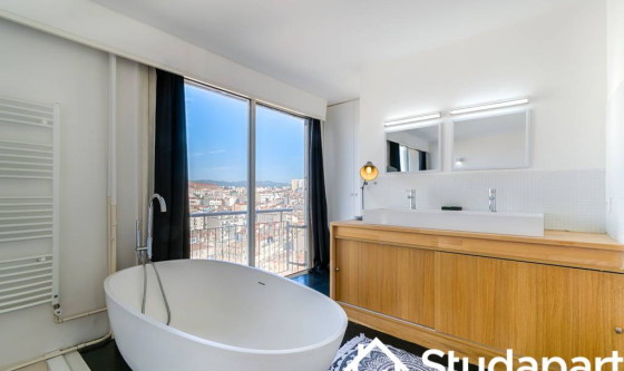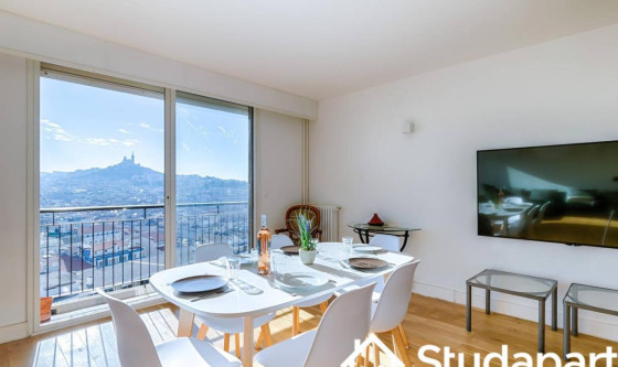Rare à la location : T3 meublé au 15ᵉ étage en hypercentre de Marseille avec vue panoramique exceptionnelle 360° sur la mer et la ville. Suite parentale avec salle de bain, chambre secondaire, salle d'eau, salon lumineux et cuisine équipée. Résidence sécurisée avec ascenseur. Une expérience unique au cœur de la cité phocéenne. Updated on 03/10/2025 Mise à jour le 03/10/2025