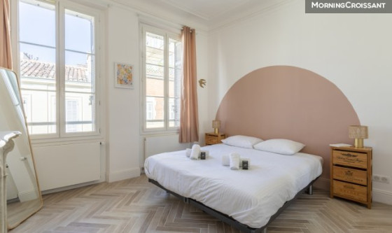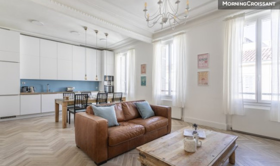 Séjournez dans ce charmant appartement typique marseillais, idéalement situé au cœur de Marseille, à proximité du Cours Julien. Un lieu parfait pour découvrir la ville et profiter de son ambiance vibrante, en couple ou entre amis. Avec une surface de 68 m², cette location est située au deuxième étage sans ascenseur et se compose de : - un vaste espace de vie baigné de lumière, réunissant un salon élégant et une salle à manger conviviale, - une cuisine ouverte entièrement équipée avec des appareils neufs (machine à café, grille-pain, bouilloire, four, micro-ondes, plaques de cuisson, lave-vaisselle, réfrigérateur, congélateur), - une chambre avec lit queen size 160 cm, - une salle de bain avec douche et WC, - bureau de travail, - aspirateur, lave-linge, sèche-linge, sèche-cheveux, fer à repasser, - TV, satellite ou câble, wifi, - air conditionné, radiateurs, détecteur de monoxyde de carbone, détecteur de fumée, cintres, - emplacement idéal pour le transport avec métro à 50 m, parking privé à proximité. Des frais de gestion d'un montant de 748€ seront facturés pour les locations en moyenne durée. Ces frais comprennent l'état des lieux d'entrée et de sortie ainsi que les frais de ménage.