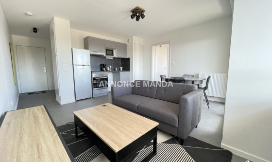 Logement Manda ! L'agence Manda vous propose ce joli T2 meublé, situé à Mérignac. Cet appartement est composé du séjour lumineux avec canapé et table à manger, de la cuisine ouverte équipée, d'un balcon, de la chambre et de la salle d'eau avec douche. Idéalement situé dans un quartier résidentiel paisible et bien desservi, le logement est à proximité des commerces, des écoles et des transports en commun. Disponible immédiatement, ce joli T2 en location n'attend que vous ! Référence du bien : MANDA-68200