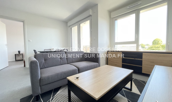 Logement Manda ! Visitez et déposez votre dossier uniquement sur notre plateforme ! Nous ne vous enverrons jamais le bail ou le RIB par mail - tout est sécurisé sur notre plateforme. L'agence Manda vous propose ce joli T2 meublé, situé à Mérignac. Cet appartement est composé du séjour lumineux avec canapé et table à manger, de la cuisine ouverte équipée, d'un balcon, de la chambre et de la salle d'eau avec douche. Idéalement situé dans un quartier résidentiel paisible et bien desservi, le logement est à proximité des commerces, des écoles et des transports en commun. Disponible immédiatement, ce joli T2 en location n'attend que vous ! VOUS POUVEZ VISITER PLUS DE 3 000 LOGEMENTS (visite virtuelle + vidéos) ET DÉPOSER VOTRE CANDIDATURE SUR LE SITE WEB MANDA (REF : MANDA-68200) Référence du bien : MANDA-68200