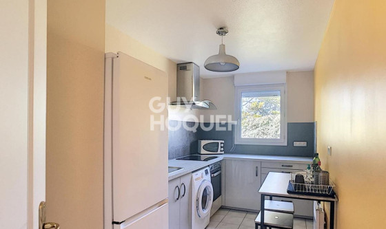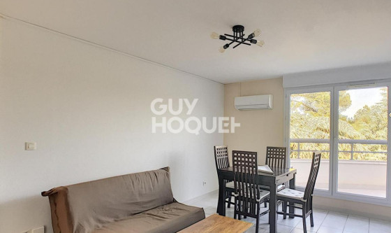 Disponible, pour un bail étudiant ou mobilité 9 mois ! Votre agence GUY HOQUET MONTPELLIER vous propose à la location ce T2 meublé de 45 m2, tout proche Hôpitaux Facultés et dans une agréable résidence sécurisée, arborée, et un gardien. Vous disposerez d'un séjour de 17 m2, attenant à une grande terrasse de 11 m2, et profiterez de sa climatisation. Votre chambre, avec son placard, donne accès également à la terrasse, sans vis à vis. La cuisine indépendante est entièrement aménagée et équipée : réfrigérateur, congélateur, four, hotte, micro onde, lave linge etc. Chauffage électrique individuel, production eau chaude individuel. Stationnement possible dans la résidence sur emplacement collectif, ou dans le local vélo/moto. Loyer hors charges : 758 euros Charges : 99 euros ( dont eau froide et provision Taxe Ordures Ménagères. Soit 857 euros CC Sous GLI Loyer de référence majoré : 824,54 euros. Loyer de base : 686.37 euros Dépôt de garantie : 1516 euros Prévoir honoraires agence : 578 euros Votre agence Guy Hoquet JUVIGNZC vous invite à déposer rapidement votre dossier complet chez notre partenaire ZELOK en scannant le QR Code que vous trouverez dans l'annonce, ou dans la rubrique Dépôt Dossier Locataire de notre site GUY HOQUET JUVIGNAC. Vous pouvez également appeler le 04.49.23.12.17 Référence : 3500LOC Emmanuelle MAUREL (EI) Agent Commercial - Numéro RSAC : 941 581 829 - MONTPELLIER. Les informations sur les risques auxquels ce bien est exposé sont disponibles sur le site Géorisques : www. georisques. gouv. fr