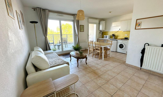Dans une résidence récente, à deux pas des commerces et du tramway, venez découvrir ce T2 meublé situé dans un environnement très calme, au coeur du secteur Hopitaux-Facultés, proche des universités et écoles supérieures. L'appartement se compose d'une cuisine ouverte sur le séjour, donnant accès à une agréable terrasse, d'une chambre, d'une salle d'eau et de WC séparés. Vous profiterez d'une magnifique terrasse avec une vue verte et dégagée, idéale pour les beaux jours. Un stationnement en sous-sol complète ce bien. Disponible immédiatement. Pour plus d'informations ou organiser une visite, contactez votre agence immobilière au 04.67.68.52.45 Loyer : 700 euros HC Charges : 50 euros comprenant eau froide et entretien des parties communes Frais d'agence : 559 euros DG : 1400 euros Loyer soumis à l'encadrement des loyers : - Loyer de référence : 15.70 euros/m² - Loyer majoré : 18.80 euros/m² Les informations sur les risques auxquels ce bien est exposé sont disponibles sur le site Géorisques : www. georisques. gouv. fr
