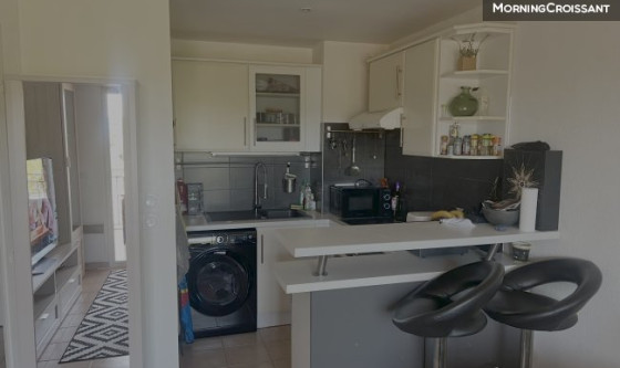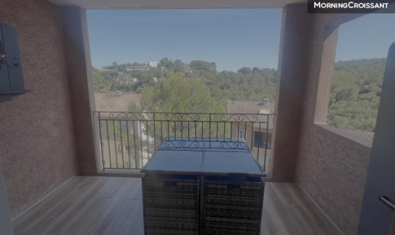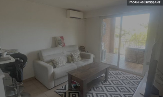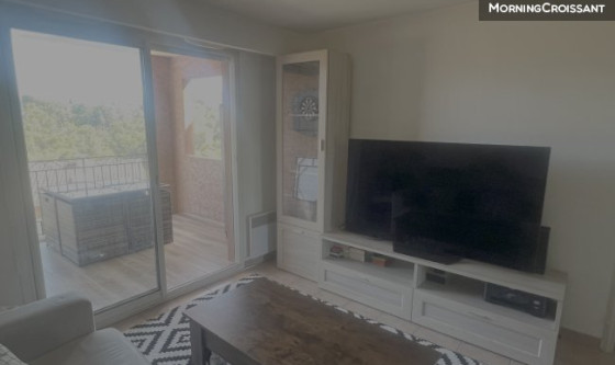 Appartement T2 avec chambre séparée, grande terrasse avec vue. L'appartement dispose d'une cuisine équipée, de la climatisation, d'un salon intérieur avec canapé, table basse et grande tv de 165cm. Lave vaisselle et lave linge séchant neufs. Quartier calme de Mougins le Haut dans une residence sécurisée à 10min de Cannes en voiture.