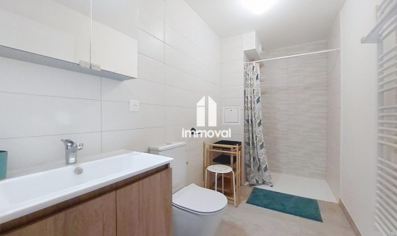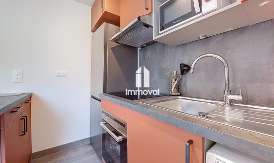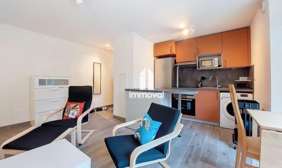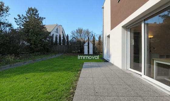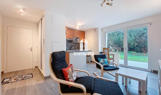 IMMOVAL vous propose : Rue Neuve, un charmant 2 pces meublé neuf de 38.80m² en rez-de-jardin avec parking privatif. Il se compose d'une entrée avec placard, d'une pièce de vie avec cuisine équipée ouverte, d'une chambre et d'une salle d'eau avec wc. Vous accédez par le séjour à une terrasse de 11.45m² avec l'usage d'un beau jardin de 79m². Parking extérieur privatif en annexe. Chauffage et eau chaude collectifs PAC. Disponible de suite.