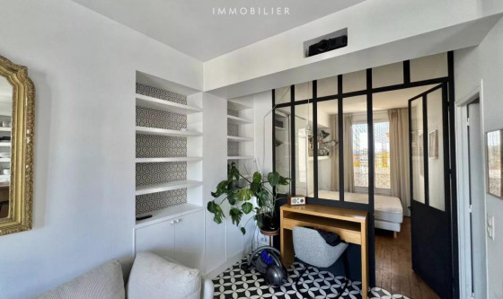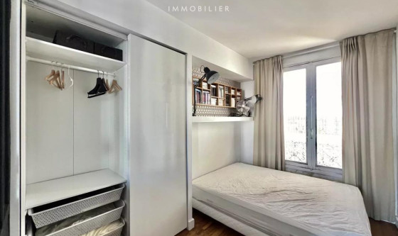 Situé au 6e étage sans ascenseur, un magnifique T2 de 40m2 composé d'une entrée avec rangements, d'un séjour spacieux avec cuisine ouverte entièrement équipée donnant accès à un balcon lumineux avec vue Tour Eiffel, d'une chambre avec rangements, d'une salle d'eau avec WC séparés. LOYER: 1515€ COMPLÉMENT DE LOYER (balcon vue monument): 225€ Charges: 60€