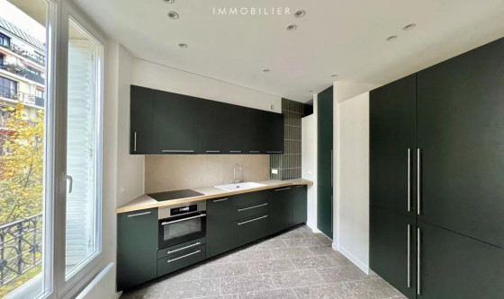Situé au 4e étage avec ascenseur, un appartement de 54m2 entièrement refait à neuf avec tout le charme de l'ancien (parquet cheminée) comprenant un séjour avec beaucoup de rangements donnant sur une cuisine ouverte aménagée et équipée avec des matériaux de qualité, d'une chambre avec rangements, d'une salle d'eau avec WC séparés. Un local vélo est disponible dans la copropriété. Loyer: 1840€ Charges: 150€ Dépot de garantie: 1840€