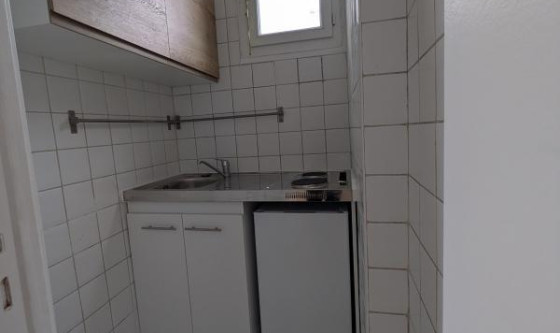 2 pieces refait a neuf. Salle de bain, wc indépendant, petite cuisine équipée, parquet, calme. Vue dégagée. Gardienne, local à Vélo. Proche commerce