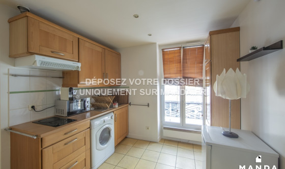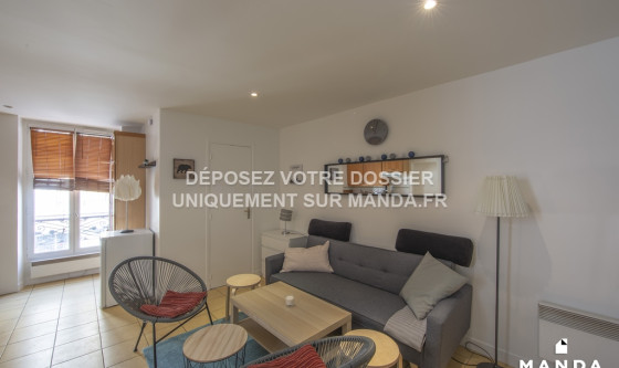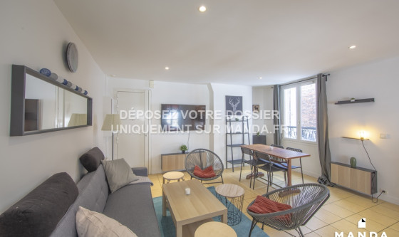 Logement Manda ! Visitez et déposez votre dossier uniquement sur notre plateforme ! Nous ne vous enverrons jamais le bail ou le RIB par mail - tout est sécurisé sur notre plateforme. Manda vous présente aujourd'hui un superbe appartement meublé de 2 pièces, idéalement situé dans le 18ᵉ arrondissement de Paris. Dès l'entrée, vous découvrirez une agréable pièce de vie, élégante et conviviale, comprenant un canapé, une table basse, des tabourets, des fauteuils, un miroir, une table à manger pour quatre personnes, un écran plat ainsi qu'un meuble TV. La cuisine ouverte, parfaitement intégrée au séjour, est entièrement équipée : machine à laver, micro-ondes, réfrigérateur, machine à café et nombreux rangements. L'ensemble bénéficie d'une belle luminosité et offre une vue sur rue. La chambre propose un confort optimal grâce à un lit double, un dressing généreux et un bureau fonctionnel, idéal pour le télétravail ou l'organisation quotidienne. La salle de bain est équipée de toilettes, d'une baignoire et d'un lavabo. Une opportunité rare à saisir ! Disponible dès maintenant. Manda.com. Pour rappel, cet appartement est situé dans une zone soumise à encadrement des loyers. Loyer de base : 958,3€ Loyer de référence majoré (Loyer de base à ne pas dépasser) : 1150,7€ Complément de loyer : 0€ VOUS POUVEZ VISITER PLUS DE 3 000 LOGEMENTS (visite virtuelle + vidéos) ET DÉPOSER VOTRE CANDIDATURE SUR LE SITE WEB MANDA (REF : MANDA-02570) Référence du bien : MANDA-02570