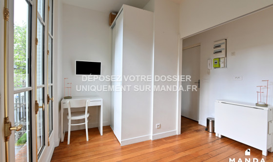 Logement Manda ! Visitez et déposez votre dossier uniquement sur notre plateforme ! Nous ne vous enverrons jamais le bail ou le RIB par mail - tout est sécurisé sur notre plateforme. À 1 minute du métro Danube, Manda vous propose un T2 Rue du Général Brunet. Situé au 1er étage sans ascenseur, cet appartement vous sera loué meublé. L'entrée donne dans le coin cuisine. La pièce principale propose un canapé convertible, une table pliante, un bureau, une chaise, une télévision et un placard avec étagères. La fenêtre donne sur la rue du Général Brunet. Cette pièce se ferme grâce à une porte coulissante La cuisine est ouverte et équipée : évier, plaque de cuisson, micro-ondes, réfrigérateur avec compartiment congélateur et plusieurs placards de rangement. La chambre propose un canapé convertible, une télévision, un bureau, une chaise et une armoire avec penderie et étagères. La salle de bain dispose d'une cabine de douche, d'une vasque, d'un miroir, d'un meuble de rangement et d'un sèche serviette. Les WC sont dans la salle de bains. Prestations de qualité pour ce T2 en location : lumineux, fonctionnel, meublé et équipé, nombreux rangements… Le métro Danube (ligne 7B) et l'arrêt de tramway Butte du Chapeau Rouge sont à quelques pas. Vous trouverez de nombreux commerces à proximité (boulangerie, boucherie, laverie, Carrefour, Naturalia…). Le parc des Buttes-Chaumont est à 5 minutes à pied ! N'attendez plus pour déposer votre dossier ! Pour rappel, cet appartement est situé dans une zone soumise à encadrement des loyers. Loyer de base : 647,5€ Loyer de référence majoré (Loyer de base à ne pas dépasser) : 777,5€ Complément de loyer : 92,5€ VOUS POUVEZ VISITER PLUS DE 3 000 LOGEMENTS (visite virtuelle + vidéos) ET DÉPOSER VOTRE CANDIDATURE SUR LE SITE WEB MANDA (REF : MANDA-00367) Référence du bien : MANDA-00367