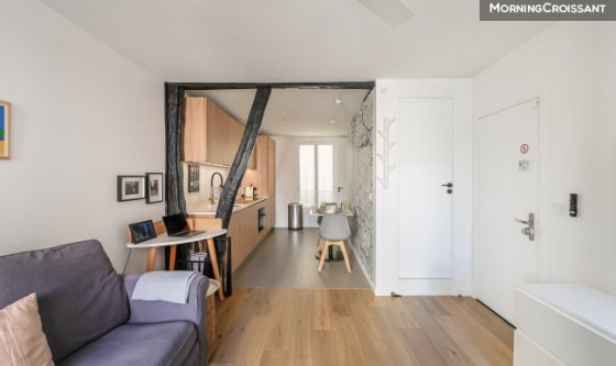 Découvrez cet appartement récemment rénové de 34 m², niché dans une cour calme, au premier étage sans ascenseur, pouvant accueillir jusqu'à 2 personnes. Avec une surface de 34 m², cette location se compose de : - une belle pièce de vie avec salon et salle à manger, - une cuisine parfaitement équipée (machine à café, bouilloire, four, four micro-ondes, plaques de cuisson, lave-vaisselle, réfrigérateur, congélateur), - une chambre avec un lit double 140 × 200 cm et une salle de bain attenante avec douche et WC, - bureau de travail, - aspirateur, lave-linge, sèche-linge, sèche-cheveux, - TV, satellite ou câble, Wifi, - ventilateur, ventilateurs de plafond, moustiquaire, - radiateurs, détecteur de monoxyde de carbone, détecteur de fumée, cintres. Le logement ne dispose pas d'un parking privé. Des frais de gestion d'un montant de 510€ vous seront facturés. Ces frais comprennent l'état des lieux d'entrée et de sortie ainsi que les frais de ménage. Après 22H, les nuisances sonores ne sont plus acceptées.