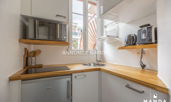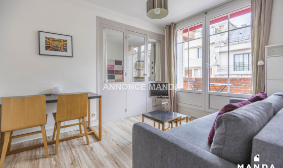 Logement Manda ! T2 meublé à louer – Paris 15ᵉ À 5 minutes à pied des métros Convention (L12) et Boucicaut (L8), Manda Immobilier vous propose ce T2 meublé au 6ᵉ étage d'une résidence calme et sécurisée. La pièce principale est équipée d'un canapé convertible, TV, table et chaises, et s'ouvre sur un grand balcon avec mobilier extérieur. La cuisine fonctionnelle comprend réfrigérateur, plaques, micro-ondes et rangements. La salle d'eau dispose d'une douche, meuble vasque, machine à laver et toilettes séparées. La chambre offre un lit double et une grande armoire. Charges incluses : eau, chauffage, eau chaude, entretien des parties communes et enlèvement des ordures. En plein cœur de Paris, proche commerces, restaurants et parcs, ce T2 spacieux, lumineux et calme est prêt à vous accueillir. Pour rappel, cet appartement est situé dans une zone soumise à encadrement des loyers. Loyer de base : 686,4€ Loyer de référence majoré (Loyer de base à ne pas dépasser) : 824,2€ Complément de loyer : 219,31€ Référence du bien : MANDA-06267