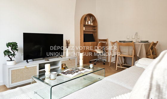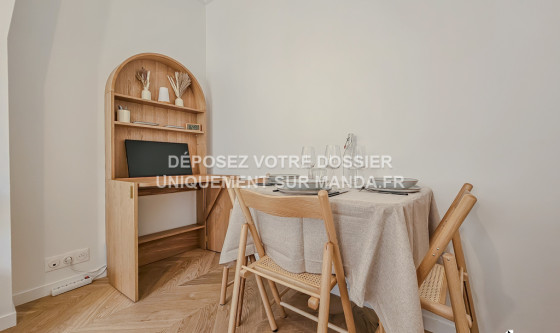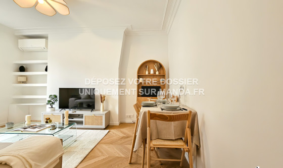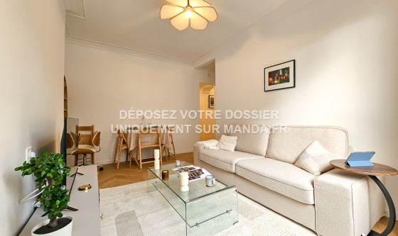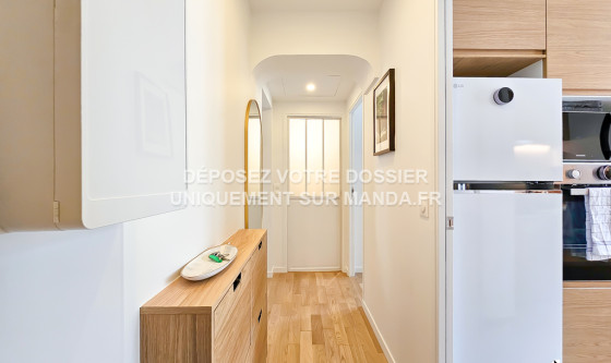Logement Manda ! Visitez et déposez votre dossier uniquement sur notre plateforme ! Nous ne vous enverrons jamais le bail ou le RIB par mail - tout est sécurisé sur notre plateforme. L'agence Manda vous propose ce T2 meublé d'exception refait à neuf, situé dans le 11ème arrondissement de Paris. Cet appartement, moderne et élégant, est composé du séjour lumineux avec canapé et écran plat, d'un balcon, de la cuisine entièrement équipée, de la chambre avec lit double 180x200cm et de la salle d'eau avec baignoire. Une climatisation réversible est installée dans le logement et une place de parking complète ce bien. Idéalement situé dans un quartier résidentiel paisible et bien desservi, le logement est à proximité des commerces, des écoles et des transports en commun. Disponible immédiatement, ce joli T2 en location n'attend que vous ! Pour rappel, cet appartement est situé dans une zone soumise à encadrement des loyers. Loyer de base : 1238,16€ Loyer de référence majoré (Loyer de base à ne pas dépasser) : 1485,79€ Complément de loyer : 614,21€ VOUS POUVEZ VISITER PLUS DE 3 000 LOGEMENTS (visite virtuelle + vidéos) ET DÉPOSER VOTRE CANDIDATURE SUR LE SITE WEB MANDA (REF : MANDA-69722) Référence du bien : MANDA-69722