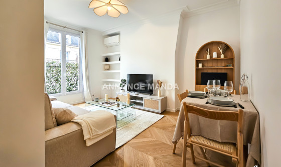 Logement Manda ! L'agence Manda vous propose ce T2 meublé d'exception refait à neuf, situé dans le 11ème arrondissement de Paris. Cet appartement, moderne et élégant, est composé du séjour lumineux avec canapé et écran plat, d'un balcon, de la cuisine entièrement équipée, de la chambre avec lit double 180x200cm et de la salle d'eau avec baignoire. Une climatisation réversible est installée dans le logement. Idéalement situé dans un quartier résidentiel paisible et bien desservi, le logement est à proximité des commerces, des écoles et des transports en commun. Une place de parking couverte et gardiennée est disponible en sus. Disponible immédiatement, ce joli T2 en location n'attend que vous ! Pour rappel, cet appartement est situé dans une zone soumise à encadrement des loyers. Loyer de base : 1238,16€ Loyer de référence majoré (Loyer de base à ne pas dépasser) : 1485,79€ Complément de loyer : 414,21€ Référence du bien : MANDA-69722