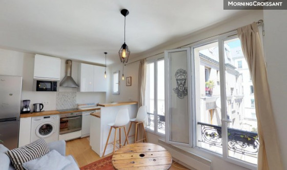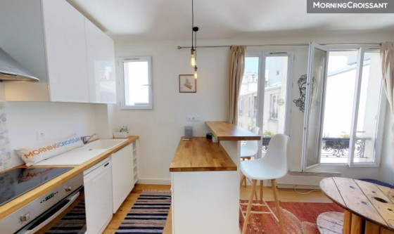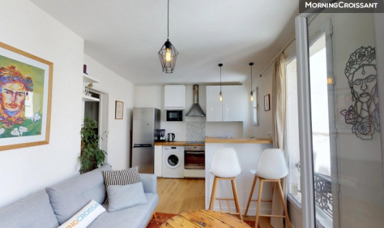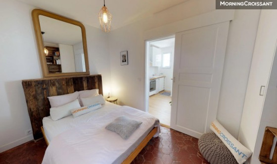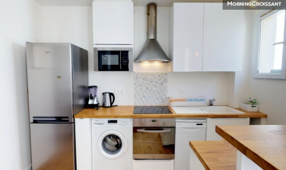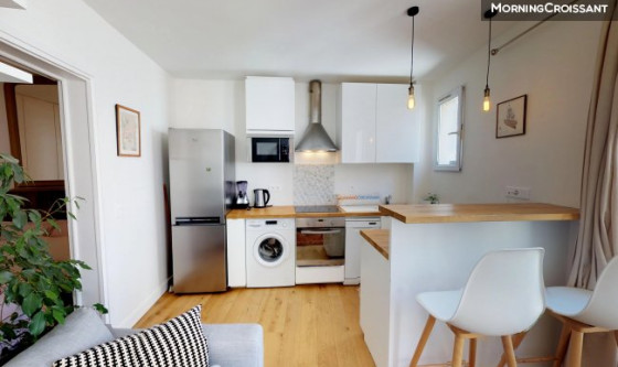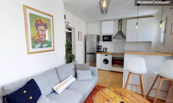 Appartement entièrement rénové – lumineux et confortable L'appartement vient d'être entièrement rénové (novembre 2025) , avec une isolation renforcée et l'installation de radiateurs à inertie pour un meilleur confort thermique et une consommation plus maîtrisée. Salon lumineux avec grandes fenêtres et cuisine américaine neuve, entièrement équipée. Le petit bar apporte une ambiance chaleureuse et conviviale. Pas de vis à vis. Un canapé convertible offre un couchage supplémentaire. Chambre confortable avec lit double et dressing intégré. Salle de bain refaite à neuf avec douche à l'italienne. Cuisine équipée : lave-vaisselle, lave-linge, plaques à induction, hotte, four, micro-ondes et tous les ustensiles nécessaires. L'appartement est très fonctionnel, pensé pour plus de confort après rénovation. Charges non incluses : EDF, Internet. Charges de copropriété et eau froide incluses.