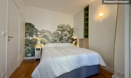 Cet appartement lumineux de 2 pièces fait environ 50 m² (54 m² au sol). Il a été entièrement rénové dans un immeuble typiquement parisien. Il est situé dans le prestigieux quartier d'Ecole militaire avec une vue sur le dôme des Invalides et à 2 minutes à pied du champ de mars et de la Tour Eiffel. L'appartement se situe au 6ème étage avec un petit ascenseur (l'ascenseur s'arrête au 5ème étage et il reste 1 étage à monter à pied par un joli escalier de service). L'immeuble bourgeois est sécurisé et bien entretenu avec une gardienne. L'appartement propose un grand séjour exposé sud, très ensoleillé, une cuisine entièrement équipée, une chambre avec un petit bureau, une salle de bain avec toilettes et fenêtre. A noté, les fenêtres de qualité sont en double vitrage et le salon comporte 3 balconnets d'où l'on peut admirer le dôme des Invalides. Il offre toutes les prestations de qualité pour accueillir 2 personnes en déplacement loisir ou affaires (et en plus en couchage occasionnel un canapé-lit dans le salon). Les 2 fenêtres de la chambre ont des volets électriques. Le lit de la chambre fait 160x200 cm. Les 3 fenêtres du salon ont des volets pliants en métal. La station de métro la plus proche est Ecole militaire. Tour virtuel : https://ap.immo/vt/159998245 Vous trouverez à votre disposition : Accès WiFi rapide et illimité (super rapide avec la fibre optique), télévision dans le salon, cuisine entièrement équipée (four traditionnel, lave-vaisselle, grille-pain, ustensiles de cuisine, réfrigérateur avec compartiment freezer, plaque de cuisson, bouilloire etc.), sèche-cheveux, linge de maison, serviettes, fer à repasser, table à repasser, machine à laver (option séchante), chauffage, aspirateur… Merci de noter qu'il n'y a pas de micro-onde, pas de climatisation. Recommandations : Il est interdit d'organiser des fêtes et de faire du bruit, les voisins de l'immeuble aspirant au calme, il est recommandé de retirer ses chaussures pour marcher dans l'appartement. Il s'agit d'un appartement non-fumeur et les animaux domestiques ne sont pas autorisés. Vous trouverez à 2 pas de l'appartement le champ-de-Mars et la Tour Eiffel, l'hôtel des Invalides, le musée Rodin, le musée du quai Branly Jacques Chirac, le Trocadéro, Beaugrenelle et son centre commercial, la tour Eiffel et le champ de Mars, de nombreuses rue commerçantes comme la rue Clerc… L'entrée des lieux est à partir de 14h. La sortie des lieux doit être avant 10h. Il est demandé au voyageur de respecter le règlement intérieur, il est interdit de fumer dans l'appartement et d'organiser des soirées, ainsi que de faire du bruit après 22h. Il est également recommandé de retirer ses chaussures pour marcher dans l'appartement Les animaux ne sont pas autorisés. Le voyageur doit payer ses consommations d'électricité et de gaz, le montant est calculé d'après le relevé du compteur.