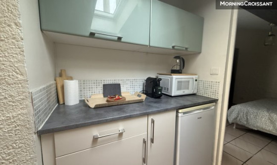 Situé au 3e étage sans ascenseur, à deux pas de la gare de Perpignan, cet appartement climatisé offre une chambre avec lit 160, un coin salon avec internet, une cuisine équipée, salle de bain avec baignoire, buanderie, vélux et puits de jour. Profitez d'une terrasse ensoleillée pour le café et d'un espace mezzanine idéal pour se détendre.