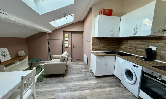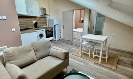 Venez découvrir ce bel appartement T2 de 28 m², entièrement rénové et meublé à neuf, idéalement situé en plein cœur de Saint-Étienne, au 13 rue de la République, à deux pas du tramway, des commerces et des écoles. Situé au 5ème étage avec ascenseur, l''appartement se compose de : Une pièce de vie lumineuse avec cuisine équipée : réfrigérateur, four, plaques de cuisson, hotte, micro-ondes et vaisselle Un coin salon confortable avec télévision Une chambre séparée avec literie neuve Une salle d'eau moderne avec douche et WC Équipements complets : TV, machine à laver, four, frigo, vaisselle, linge de lit… Rien à prévoir, vous n'avez plus qu'à poser vos valises ! Les plus : Emplacement hyper centre, proche tram, gare, commerces, écoles Appartement lumineux, décoré avec goût Immeuble calme et bien entretenu. Disponible immédiatement. Chauffage individuel électrique. Estimation des couts annuels d'énergie du logement : entre 680€ et 960€ par an (prix moyens des énergies indexés sur les années 2021, 2022 et 2023 abonnements comrpris). Les informations sur les risques auxquels ce bien est exposé sont disponibles sur le site Géorisques : www.georisques.gouv.fr