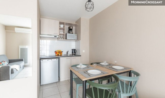 Idéalement située, à proximité de l'aéroport de Bordeaux Mérignac. Entièrement meublés et conçus pour un séjour en totale indépendance, vous profitez librement d'une literie confortable, d'un espace de travail ainsi que d'une cuisine équipée. Profitez d'une connexion wifi très haut débit, ainsi que de services hôteliers à la carte (laverie, parking privé). Piscine extérieure chauffée, ouverte à partir de juin. Dans le cadre d'une location saisonnière, en plus du loyer mensuel, une taxe de séjour, d'un montant qui varie par nuit et par personne, sera à régler directement auprès de la résidence.