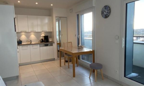 A Saint- Malo, dans une résidence récente avec ascenseur intitulée "Carré Bourbon", appartement meublé T2 de 42.20 m² situé au 5ème et dernier étage comprenant une entrée, une cuisine aménagée et équipée ouverte sur un salon, une salle d'eau, une chambre. Un cellier. Un balcon. Une place de parking sécurisée. Les informations sur les risques auxquels ce bien est exposé sont disponibles sur le site Géorisques : www.georisques.gouv.fr