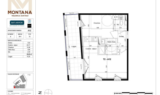 SAINT MALO, dans le quartier de l'hippodrome, et dans une résidence neuve, un appartement T2 comprenant Une entrée, un séjour donnant sur une loggia de 15.25m², une cuisine ouverte aménagée, une chambre, une salle d'eau, wc séparés. Parking Couvert. Conditions de ressources Loi Pinel. « Les informations sur les risques auxquels ce bien est exposé sont disponibles sur le site Géorisques : www.georisques.gouv.fr »
