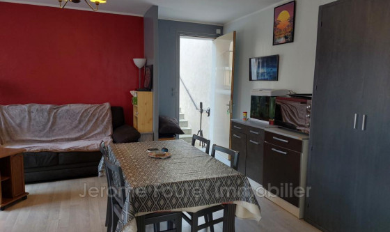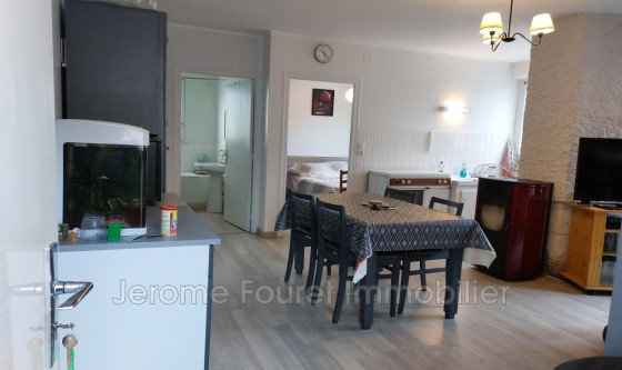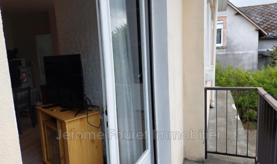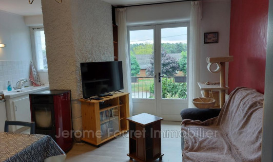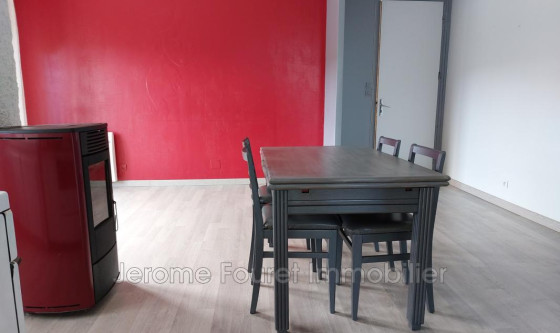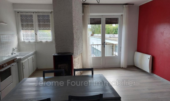 Appartement situé au 1er étage composé d'une entrée sur pièce de vie avec poele à pellets + chauffage électrique, balcon, chambre, salle de bains avec wc. Location nue. un emplacement parking voiture dans la cour privée.